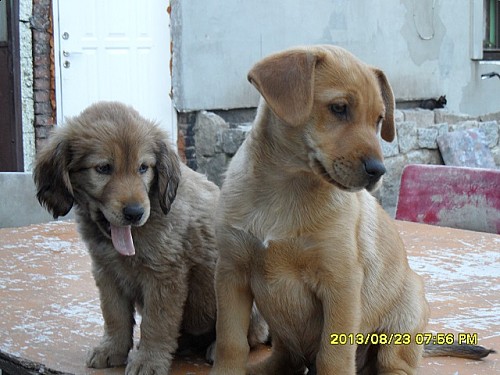 2 szczeniaki pieski około 2-miesięczne. Ich matka jest mixem labradora.