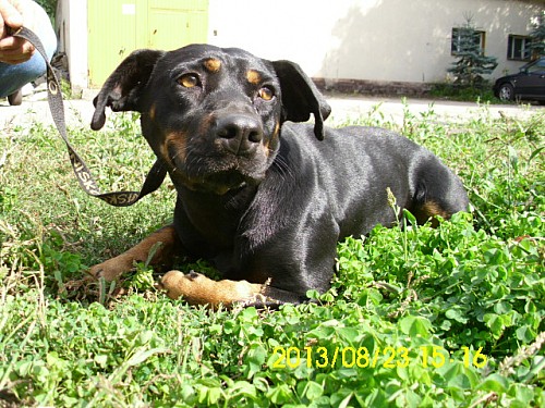 Wroncia to młoda suczka przywieziona w ostatnich dniach sierpnia 2013 r. z Wronek. Jest spokojna w bardzo dobrej kondycji, około 2 lat. Wygląda jak jamnik skrzyżowany z rottwailerem. Sunia jest przyjacielska.
