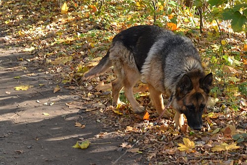 ####2013-09-05: Lejla to ok. 4-5 letnia sunia####2013-09-05: Prawdopodobnie była trzymana w małym kojcu:-(####2013-10-22: Lejla na jesiennym spacerku####2013-10-22: Odpoczynek - nie przeszkadza jej sesja zdjęciowa:-)####2013-10-22: Lejla jest mniejsza niż typowe sunie owczarka