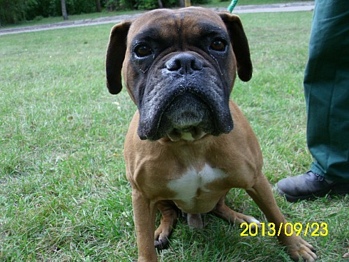 To absolutnie fantastyczny bokser w wieku 3, maksymalnie 4 lat. Bardzo przyjacielski, łagodny, spokojny i zrównoważony. Ludzi uwielbia, wobec innych psów jest łagodny - nie reaguje nawet nawet na ujadające psy