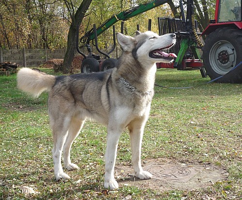 Chinook trafił do schroniska w połowie października 2013 r. Został złapany w gminie Oborniki. To piękny pies w typie Alaskan Malamut. Jest bardzo spokojny, opanowany, bardzo ładnie chodzi na smyczy, nie ciągnie. Umie biegać przy rowerze, co jest o tyle istotne, że takie psy jak Chinook bardzo lubią ruch, a wycieczka rowerowa to najprostszy sposób na zapewnienie mu odpowiedniego treningu. Zwierzak jest młody: ma ok. 2 - 2,5 lat. Jest łagodny, przyjazny - chętnie podstawia głowę do głaskania i przytula się do człowieka. Bardzo lubi dzieci: na spacerze wyraźnie cieszył się i ożywiał na widok dzieciaków. Wobec dziewczynki, która podeszła go pogłaskać zachowywał się bardzo uważnie i delikatnie - widać, że jest przyzwyczajony do obcowania z maluchami. Wspaniały, piękny, efektowny pies - doskonale sprawdzi się jako rodzinny pupilek. Nie nadaje się do stróżowania i pilnowania posesji, najlepiej czułby się w domu z ogrodem, pod warunkiem stałego kontaktu z człowiekiem. Pies został wykastrowany.