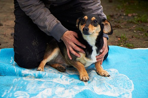 Elton to młody, mały piesek. Przywieziony został na początku listopada 2013 r. z Murowanej Gośliny. Ma krótki ogon.