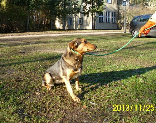 Maniula to młoda suczka przywieziona z Maniewa w połowie listopada 2013 r. Sunia jest łagodna, niestety nie umie chodzić na smyczy, jest przestraszona sytuacją:-(