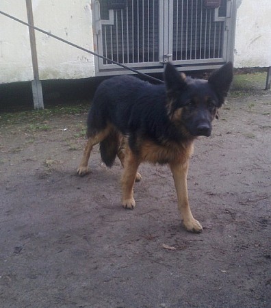 Agar to pies - owczarek niemiecki przywieziony 21 grudnia 2013 r. z Mrowina - gm. Rokietnica. Trafił do schroniska razem z Czakim. Agar jest młody ok roku, nieźle chodzi na smyczy, jest pojętny i mądry. Psy raczej pilnowały jakiegoś terenu. Agar został wykastrowany (początek stycznia 2014 r.)