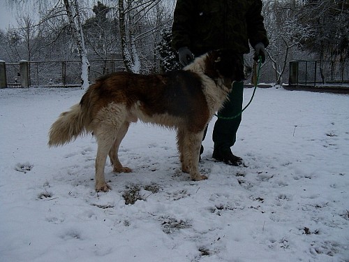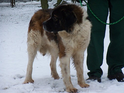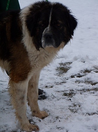 Olo to pies, mieszaniec bernardyna. Ponoć przez pół roku błąkał się po Laskowie koło Rogoźna, został przywieziony do schroniska w pierwszych dniach stycznia 2014 r. Jest w wieku ok 2,5 lat. Olo jest przyjacielski, łagodny, lubi ludzi, ładnie chodzi na smyczy, siada, podaje łapę. To bardzo pozytywny, radosny, wesoły pies.Nie agresywny wobec innych psów. Ze względu na długą sierść lubi przebywać na dworze - nadaje się do domu z ogrodem - lubi przebywać na dworze. potrafi zachować się na spacerze po ruchliwej ulicy, jest spokojny, opanowany. Miły, przyjazny, łagodny olbrzym.
