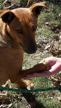 Ada to suczka przywieziona z Rogoźna na początku marca 2014 r. Prawdopodobnie kiedyś miała ucięte palce przedniej prawej łapki, ale jest ona już zaleczona i sunia świetnie sobie z nią radzi. Ada jest wesoła, przyjazna dla całego świata zarówno psiego jak i ludzkiego :-)