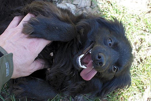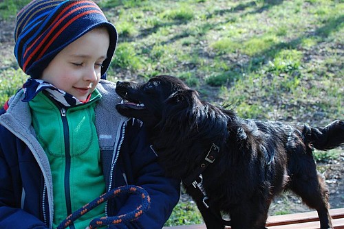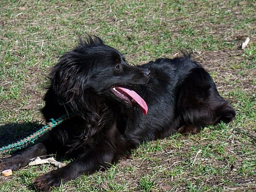 Fruzia to mała, żywiołowa suczka, cała czarna. Sunia została przywieziona 24 marca 2014 r. z Wronek. Fruzia jest bardzo przyjacielska w ciągłym ruchu, a jak się ją już głaszcze to od razu brzuchem do góry:) Fruzia jest ulubienicą dzieci, przychodzącą na spacerki do schroniska.
