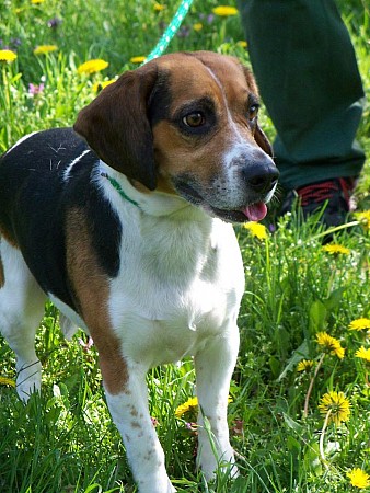 Waśka to suka beagle. Została znaleziona w kagańcu i kolczatce, przywieziona 25 kwietnia 2014 r. z Wojnowa z gminy Murowana Goślina. Sunia jest bardzo przestraszona ale łagodna.