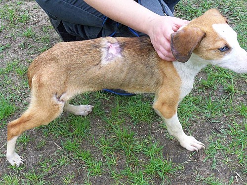 Szarlotka to młoda, mała sunia, która razem z bratem Barusiem została w sobotę 26 kwietnia 2014 r. interwencyjnie odebrana z tragicznych warunków w jakich były oba psy trzymane. Są one mocno wychudzone, wręcz wygłodzone. Obecnie przebywa w naszym schronisku i czeka na nowy, spokojny i bezpieczny dom. Kontakt w sprawie adopcji: Iwona 665-054-582