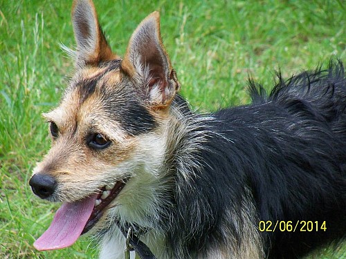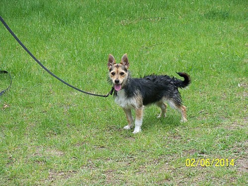 Melania to młoda około 1,5 roczna suczka, trafiła do schroniska 30 maja 2014 r. ze Suchego Lasu. Suczka nie znała smyczy, jest pogodna, wesoła i przyjacielska.