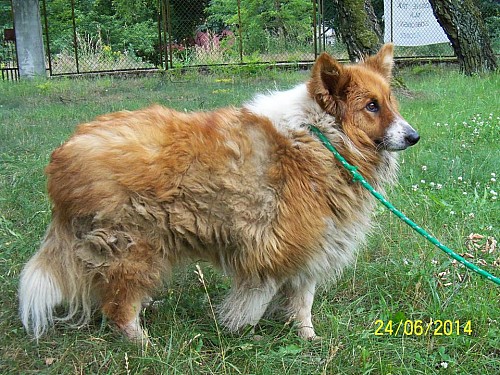 Largo to pies- mix collie, przywieziony 21 czerwca 2014 r. z miejscowości Pruśce z gminy Rogoźno. Pies około 2 -3 letni, nie ufa ludziom, bardzo zaniedbany :-( Psiak okazało się jest wykastrowany, z nadwagą :-( Został dość mocno podstrzyżony, wygląda o niebo lepiej.