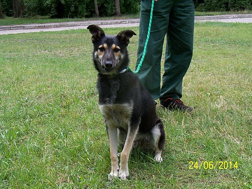 Kajtek to młody - roczny psiak. Został przywieziony w drugiej połowie czerwca 2014 r. z gminy Rokietnica, był schowany mocno był w krzakach w lesie. Psiak jest spokojny, miły i nieagresywny.