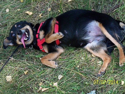 Elizabeth jest maleńką, kilkuletnią sunią, waży ok. 4-5 kg. Eluszka została przywieziona w połowie czerwca 2014 r. z gminy Rogoźno wraz ze swoimi dwoma szczeniakami. Wszystkie trzy psy były tak bardzo zdziczałe, że siedziały skulone w kącie kojca, trzęsły się i warczały ze strachu. Po dwóch tygodniach pobytu w domu tymczasowym Elizabeth zaczęła współpracować z człowiekiem. Obecnie Eluszka merdając ogonem podąża za opiekunem, wychodzi na spacery, zgadza się z innymi psami i kotem. Grzecznie jeździ samochodem, a w domu dużo czasu spędza na swoim posłaniu. Suczka zachowuje czystość. Nadal jest to pies strachliwy, a zdobycie jej zaufania wymagać będzie czasu i cierpliwości. Warto jednak podjąć ten wysiłek, aby cieszyć się ufnym spojrzeniem Eluszki i jej uśmiechem. Więcej informacji może podać wolontariuszka Alicja: 504 065 366.