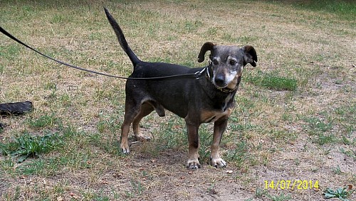 Ami to około 6-7 letni pies przywieziony z Rudy w gminie Rogoźno 10 lipca 2014 r. Ami przyjechał z lekko przetrąconą nogą. Psiak jest przyjacielski, spokojny. Ami został wykastrowany (połowa września 2014 r.) Ami na pewno kiedyś mieszkał w domu, podczas pobytu po kastracji w pomieszczeniu nigdy nie nabrudził, nawet jak zostawał na wiele godzin w nim jak schronisko było zamknięte. Psiak też niczego nie niszczy - idealny do zamieszkania w bloku, nawet jak jego nowa Rodzina poza domem podczas godzin pracy.