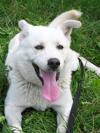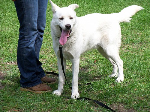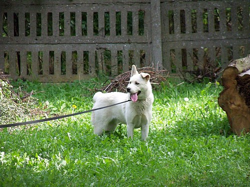 Psiak nie posiada czipa. Utrzymuje czystość w kojcu, nie nauczony smyczy, dla ludzi jest łagodny, suczki w zabawie dominuje.