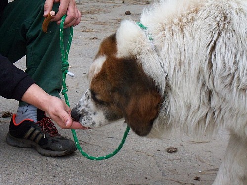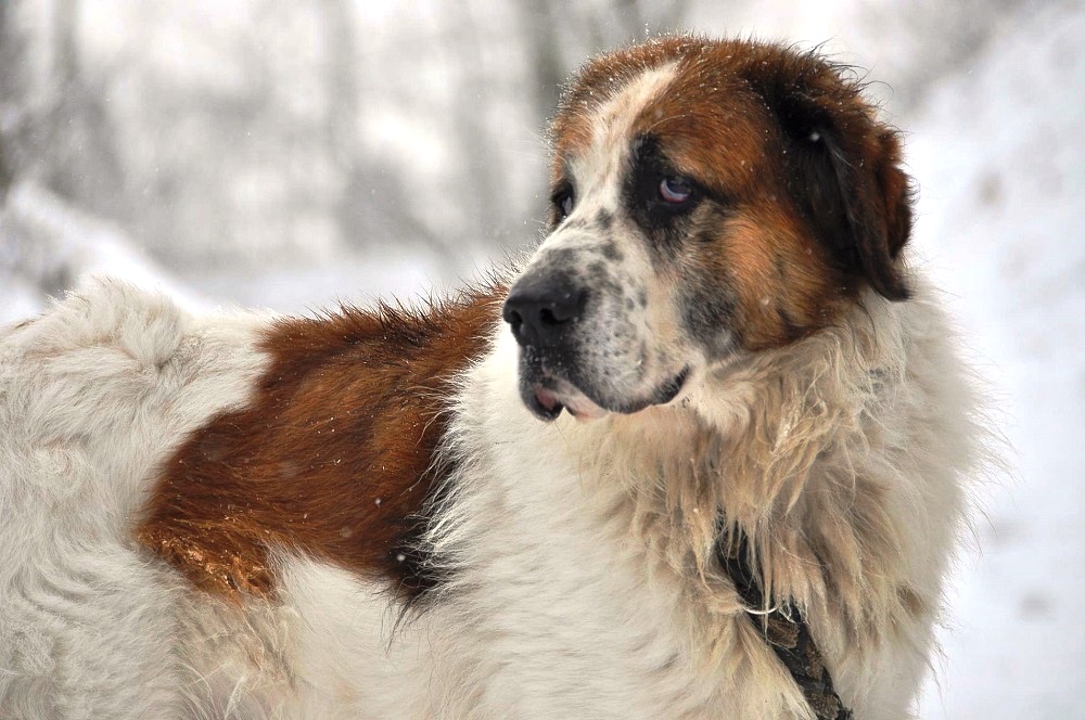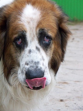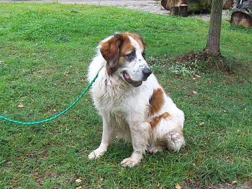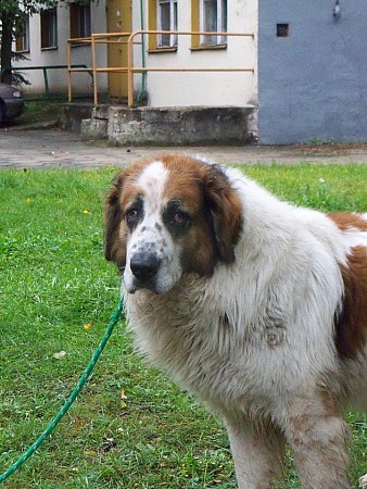 Biniu to pies, bernardyn około 5 lat, łagodny, spokojny, nie chodzi na smyczy, bez czipa. Przyjechał z gminy Wronki pod koniec września 2014 r. Biuniu jest dość szczupły, podaje łapkę.