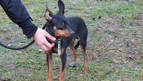 Placek to malutki (5kg) 4-5 letni piesek przywieziony pod koniec listopada 2014 r. z gminy Rogoźno, błąkający się od kilku dni w okolicy Garbatki. Ma lekki stan zapalny w prawym oku (w trakcie leczenia), pod brzuchem był brudny od ziemi, miał bardzo zniszczoną obrożę z pieskami. Placek przebywa w domu tymczasowym. Jest psem bardzo spokojnym, zgadza się z innymi psami i kotami. Nie reaguje na zaczepki innych psów. Jest przyjazny dla dzieci. Chętnie chodzi na spacery, nie ciągnie na smyczy, przychodzi na zawołanie. Utrzymuje czystość w domu, dużo czasu spędza na swoim posłaniu. Jak wszystkie maleńkie, krótkowłose psy w chłodne dni marznie i musi nosi elegancki kubraczek