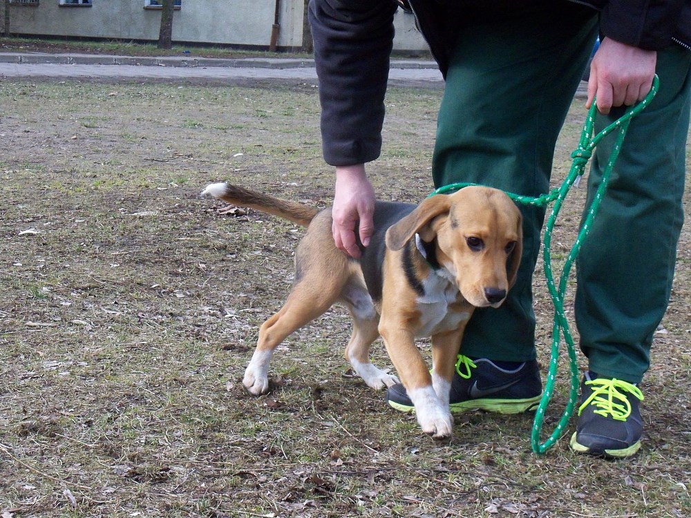 Beagle- samiec został złapany w piątek w Rogoźnie. Jest młody- niespełna rok, przyjacielski i widać, że fajnie uczony był posłuszeństwa