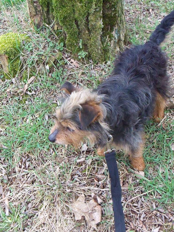 Piesek starszy, który chodził 11.03 po nowej drodze na Słonawy w Obornikach. Miał na sobie adresówkę ale nr który na niej widnieje jest błędny:(((