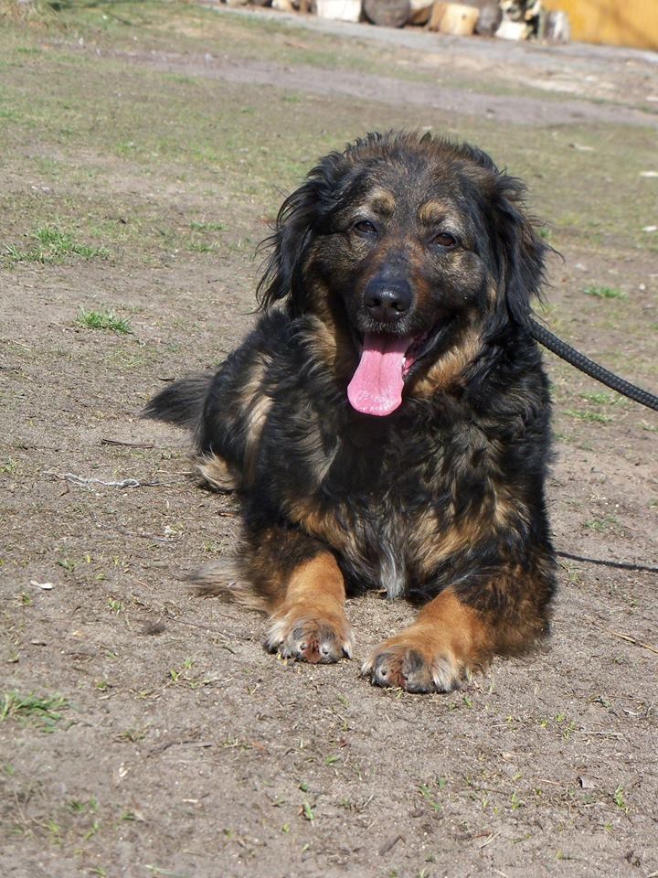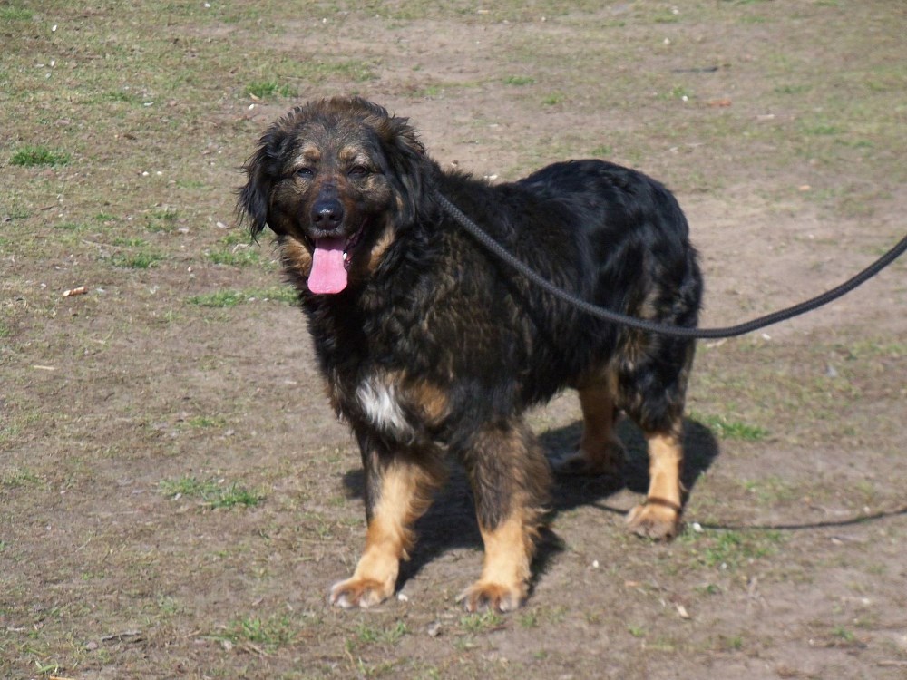Pies z gminy Ryczywół, ma około 3 lat, jest łagodny ale pierwszy kontakt z psami był nerwowy. Był raczej psem podwórkowym
