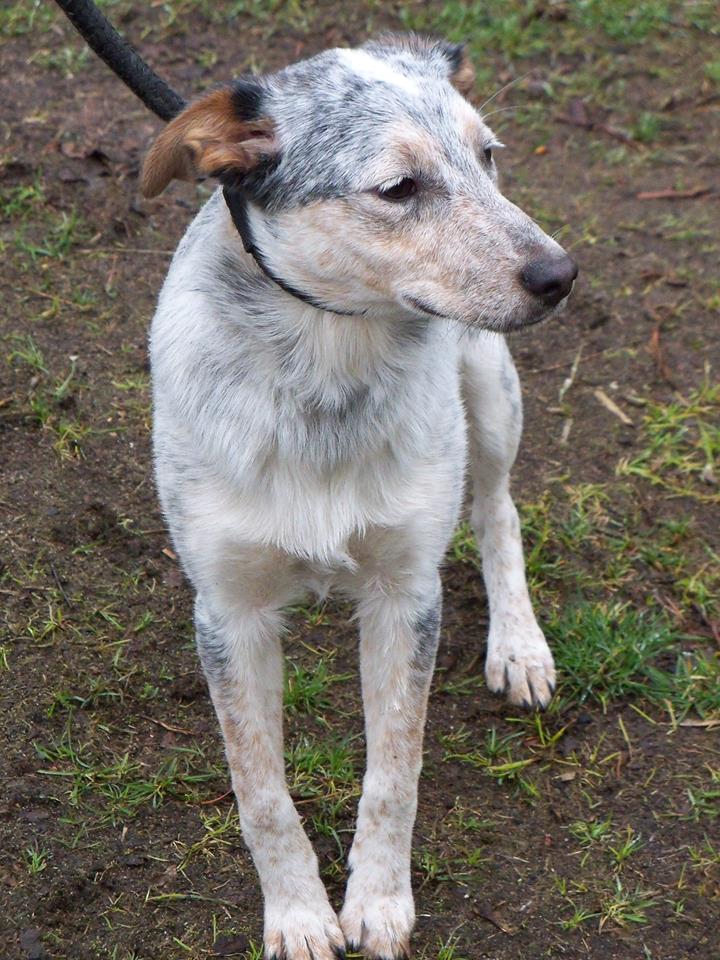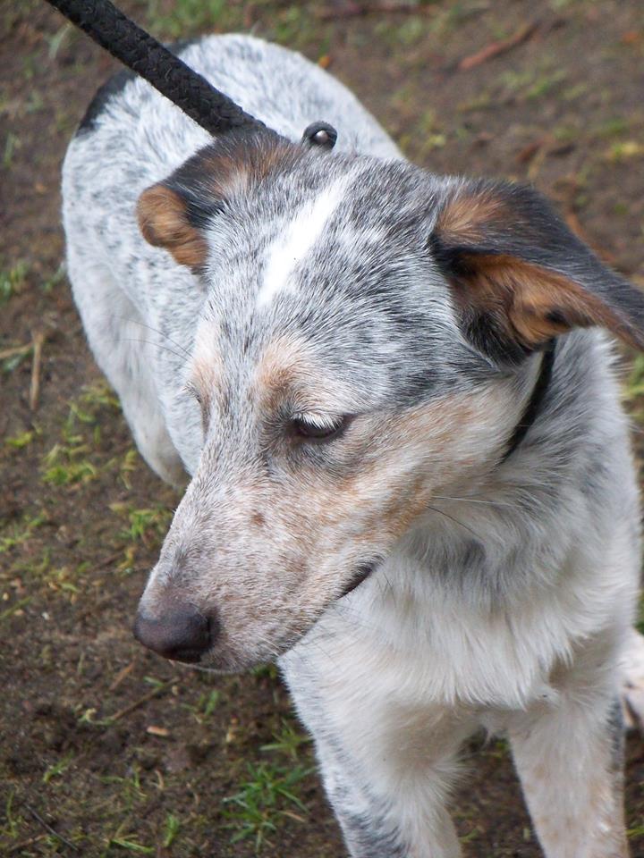 suczka błąkająca się wczoraj po rynku w Obornikach. Miała na sobie niebieską obroże i pozrywaną i poplątana różową smycz. Jest młoda ok. 6 m-cy