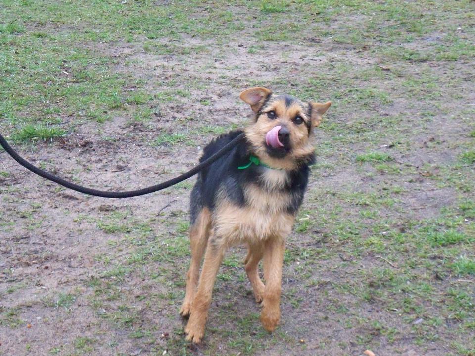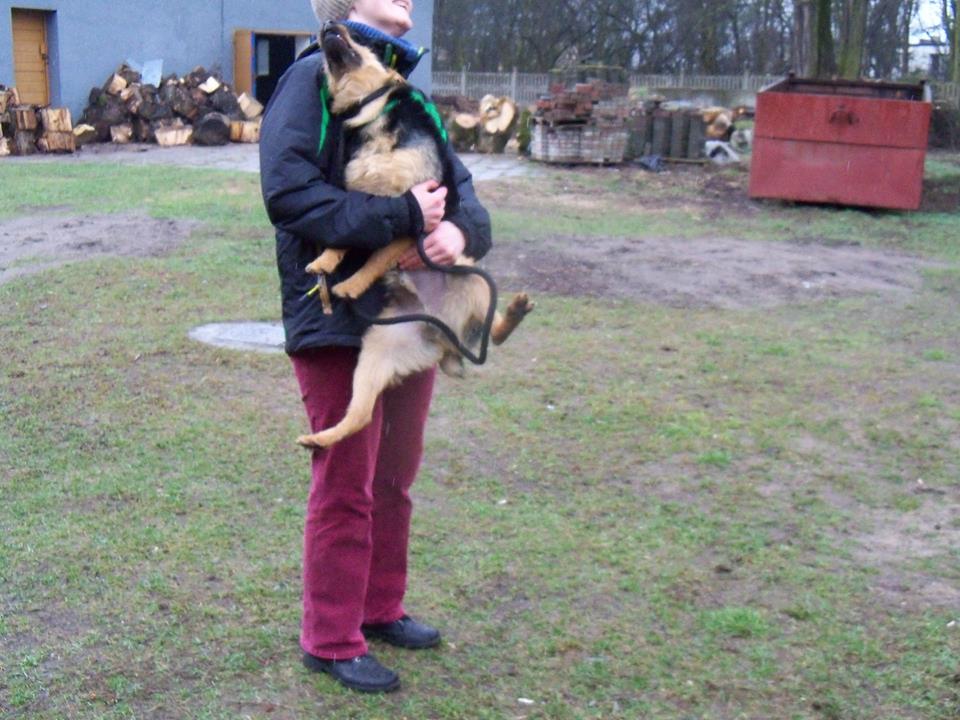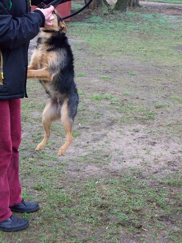 Pies z gminy Kamieniec, młodyokoło roczny, energiczny, wesoły, lubi skakać na ręce człowieka:))