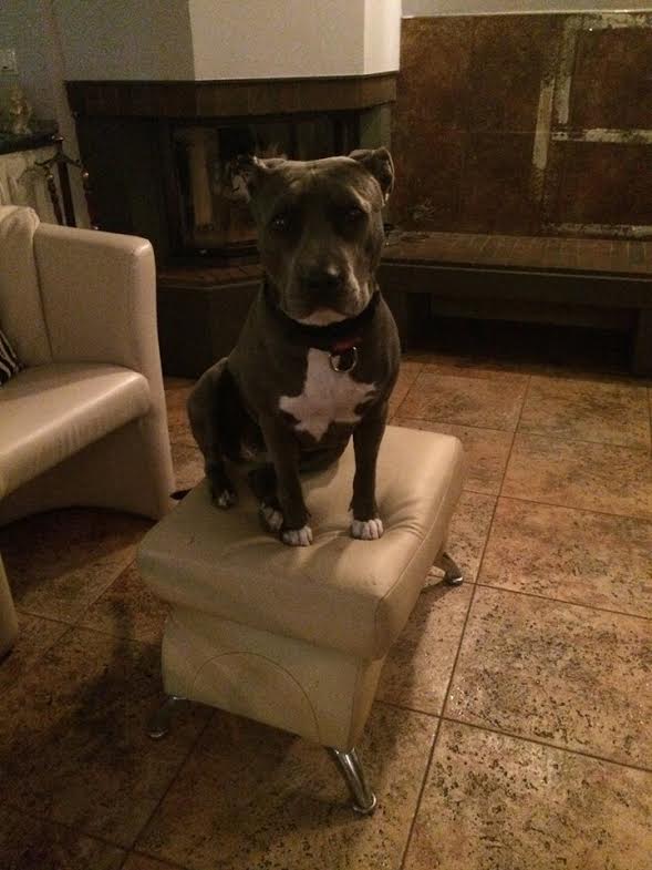 Poszukuję dobrego domu dla 2 letniej suczki –błękitnej rasy Amstaff. Bardzo lubi towarzystwo, zabawy, spacery. Od szczeniaka wychodziła z innymi psami na wybiegi. Co mogła w domu już zniszczyła, teraz gryzie tylko kości. Jest bardzo silna i zadbana z wszelkimi szczepieniami. Nie lubi małych dzieci bo wychowywała się wśród dorosłych, o których jest bardzo zazdrosna. Wabi się Blu. Andrzej 795 057 4