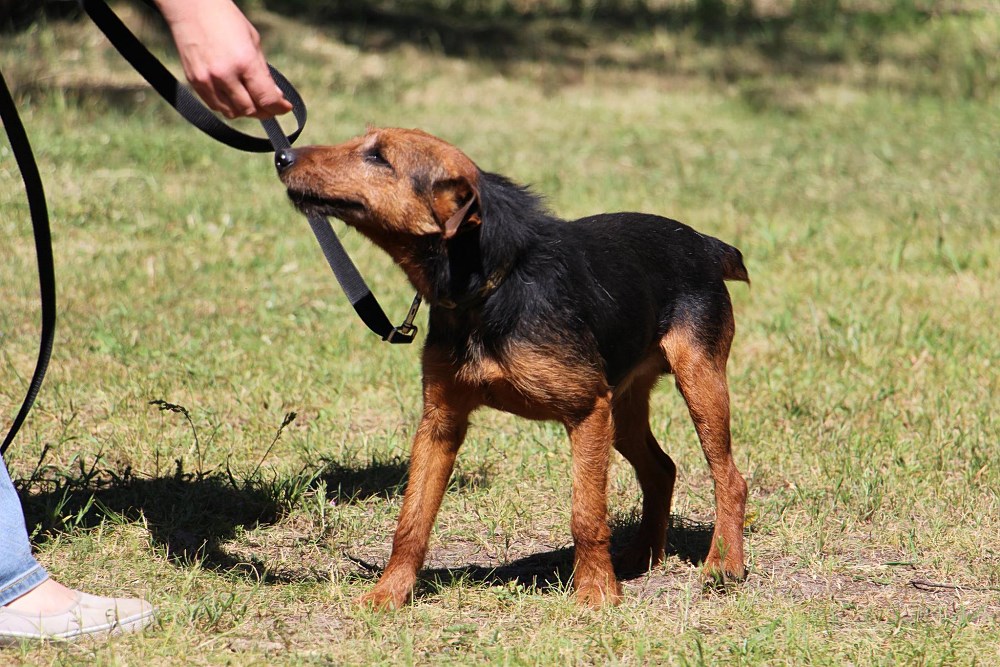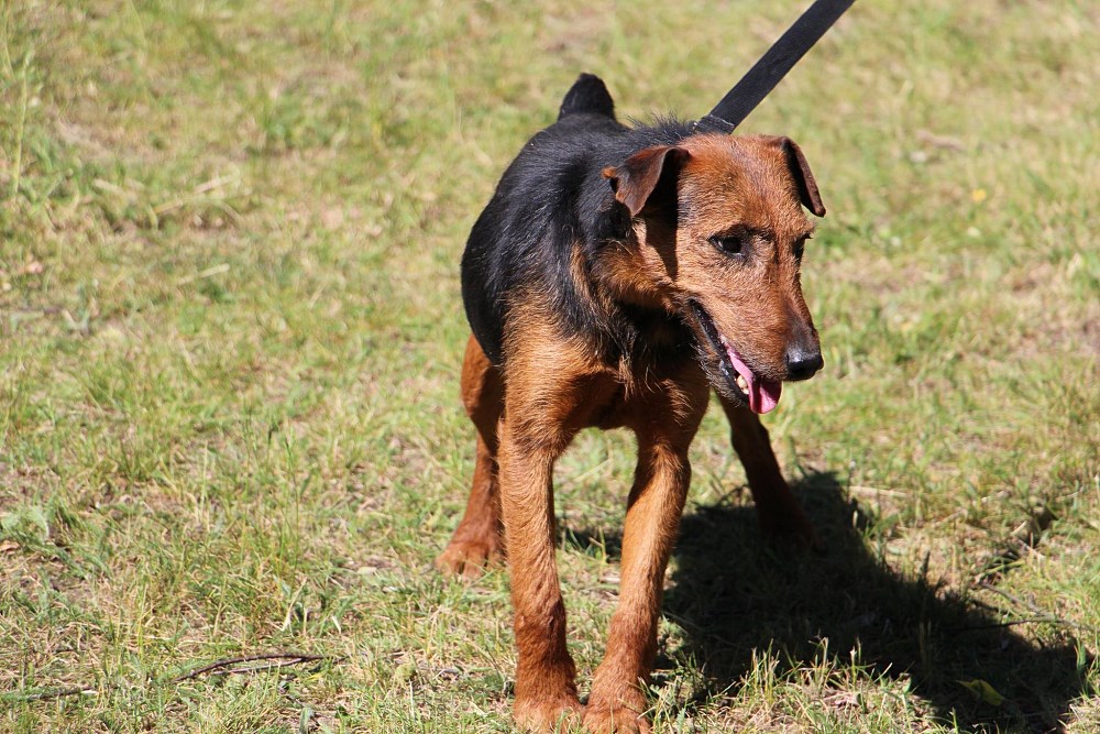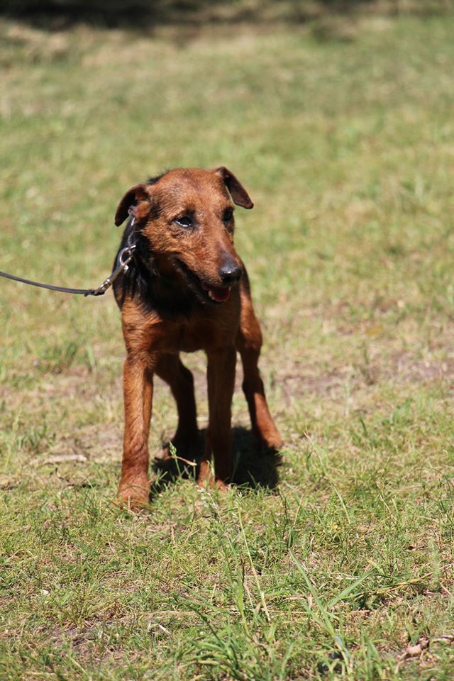 Pies przywieziony z Rogoźna, bardzo spokojny, łagodny, zęby ma mocno starte tak jakby ciągle coś twardego gryzł.