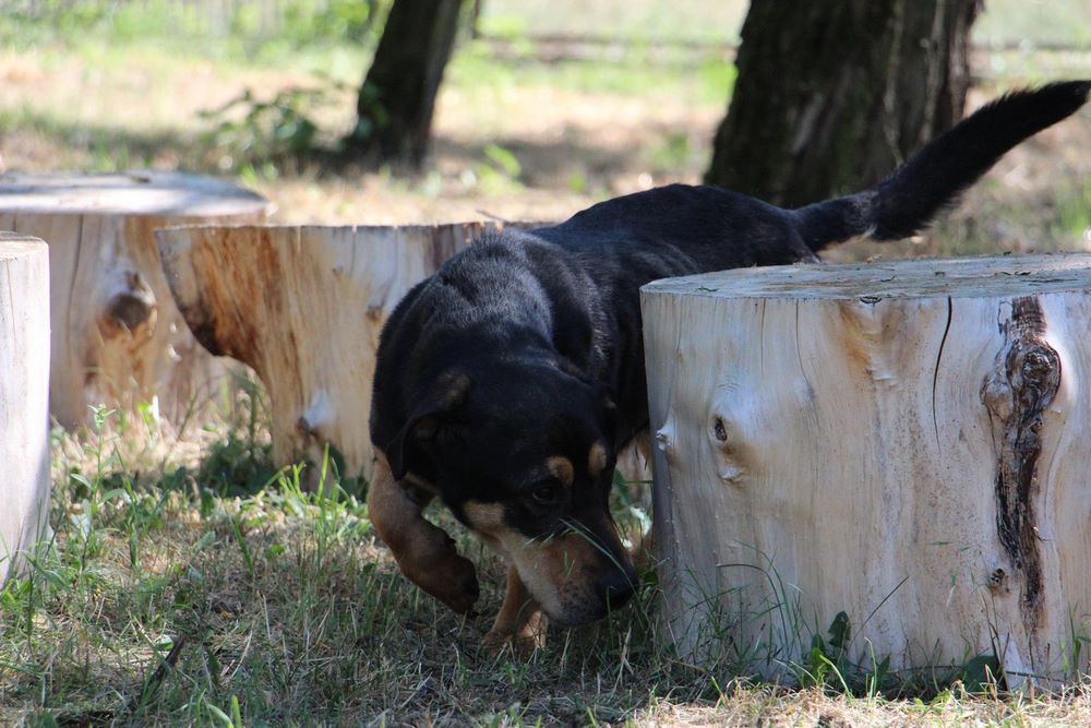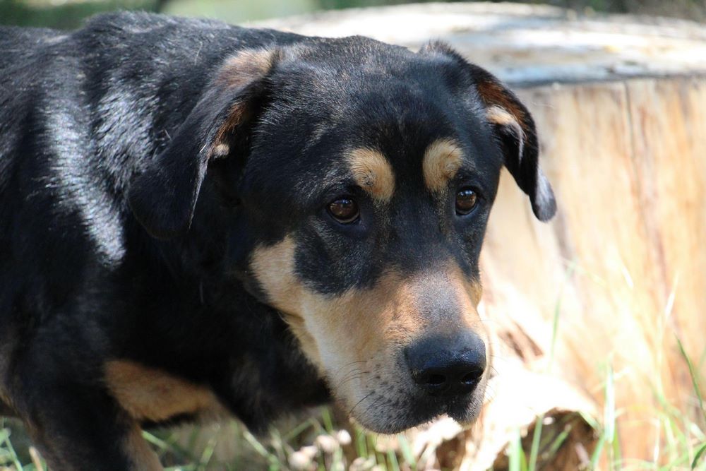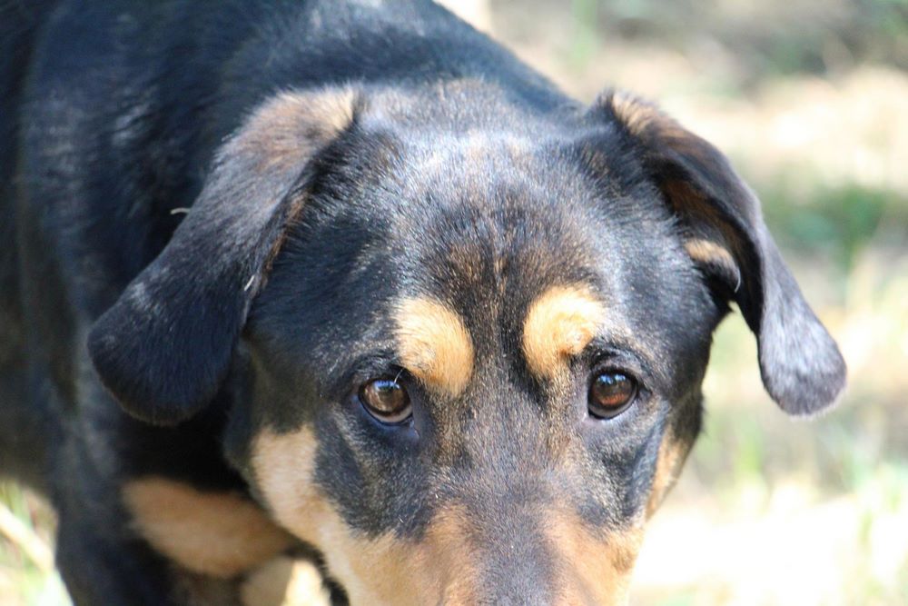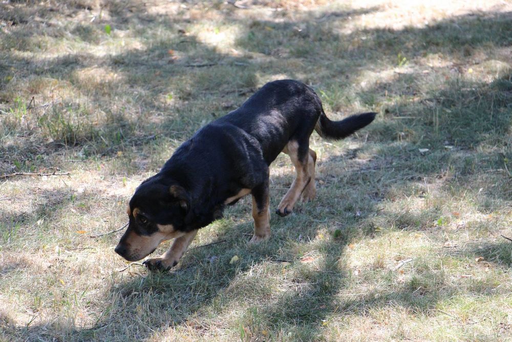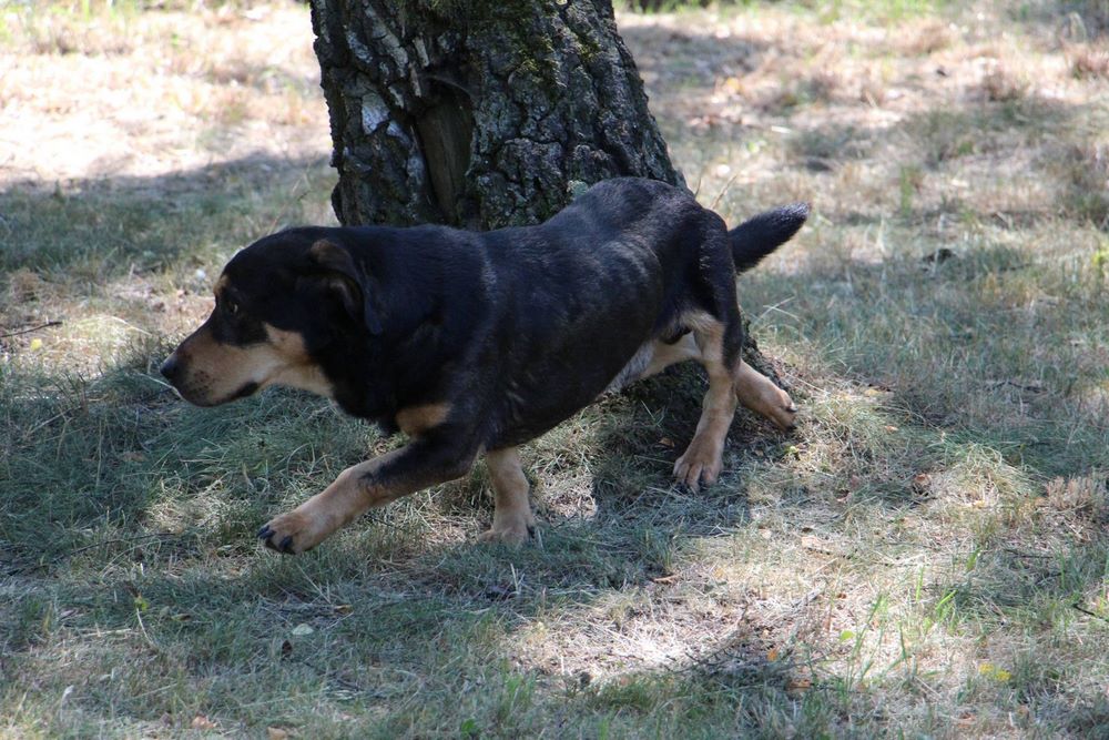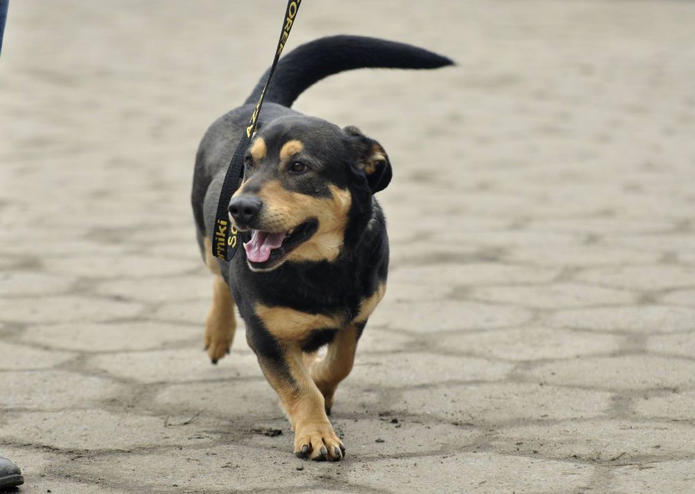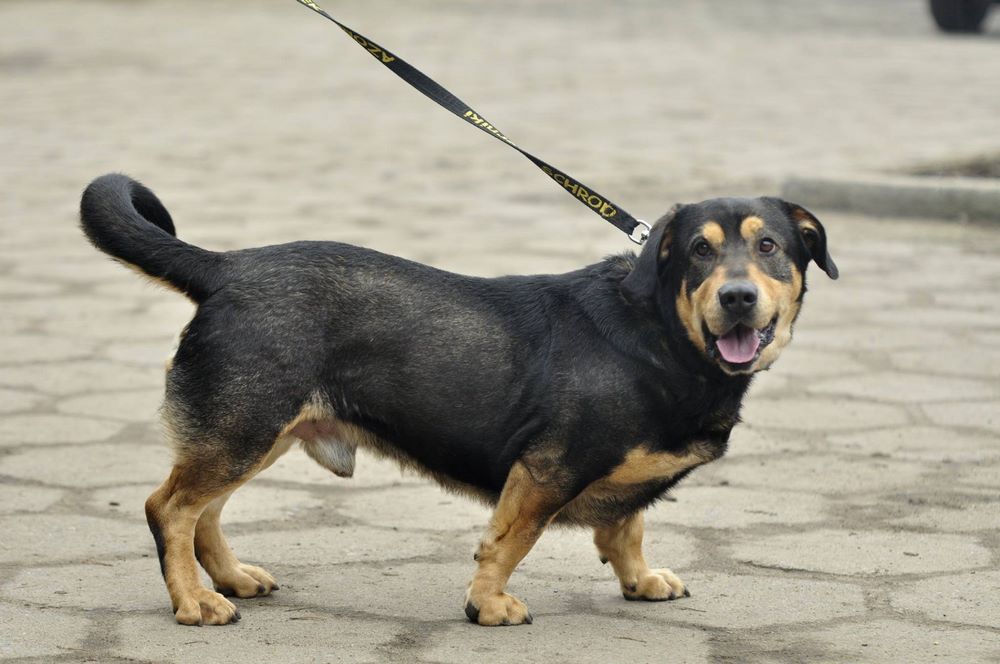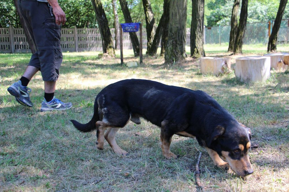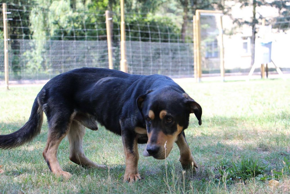 Pies z gminy Oborniki, ma ponad rok, jest bardzo chudy, zaledwie 18 kg, około 50 kleszczy, zachowuje czystość w kojcu, bardzo łagodny i bojący się człowieka bardzo- choć gdy już trochę zaufa to ogon podnosi nieco wyżej :)