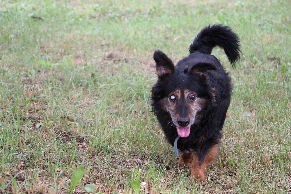Pies przywieziony z lasu prawie ślepy, starszy ale pełen radości, świetnie sobie radzi, towarzyski względem psów. Nie wiadomo tylko dlaczego pies, który ma dobry węch przez ślepotę zwiększony nie mógł trafić z lasu do domu...