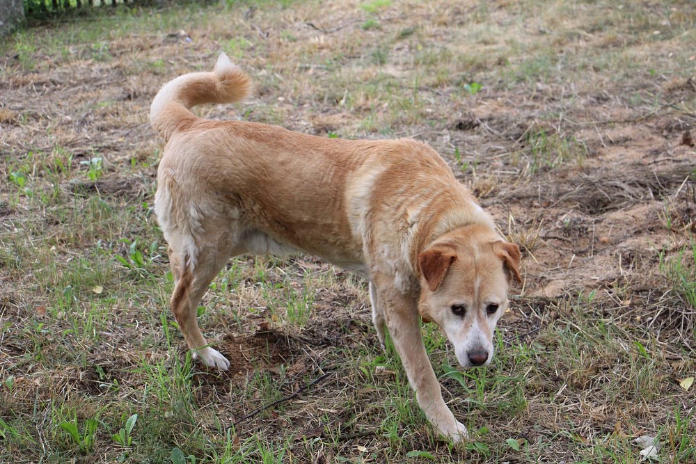 Pies przywieziony z gminy Murowana Goślina. Ma tabliczkę ze szczepienia na wściekliznę ale nie wpisaną nigdzie przez weterynarza ani przez właściciela. Jest psem wykastrowanym.