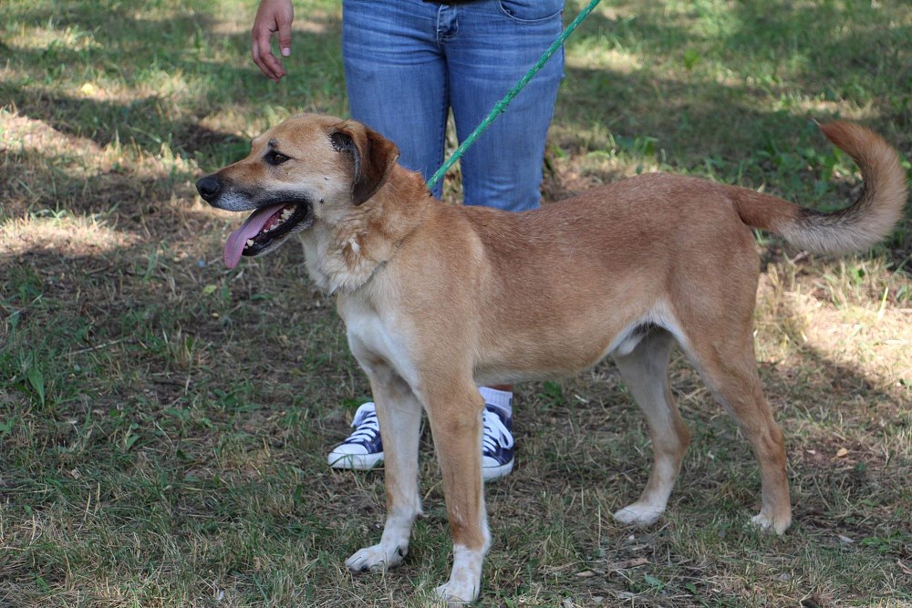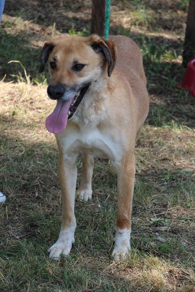 Pies z gminy Czarnków, ma około 2 -3 lat, spokojny, miły, towarzyski dla ludzi i psów.
