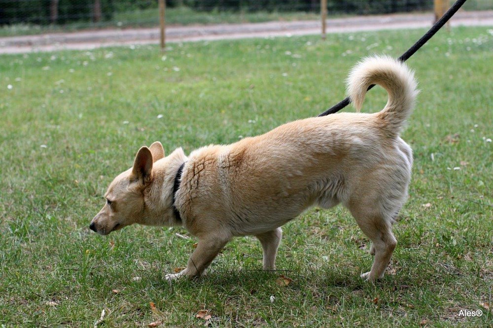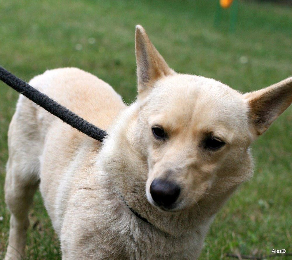 Łapek ma ok. 2 lat, przyjechał z Lulina. Psiak ma niedorozwój przedniej prawej łapy, ale nie przeszkadza mu to zanadto. Najprawdopodobniej był psem podwórkowym. Niechętnie chodzi na smyczy.