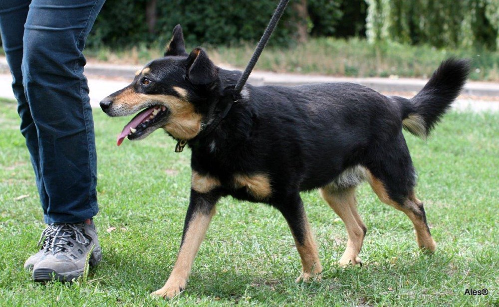 Gryś ma około 3-4 lat. Przyjechał ze schroniska w Jędrzejewie z gminy Czarnków, z miejscowości Brzezno. Jest wykastrowany, ma komplet szczepień. Gryś to psiak średniej wielkości. Najlepiej czułby się na podwórku, pilnując terenu. Gryś niechętnie chodzi na smyczy. Jak mu coś nie pasuje lubi podyskutować.