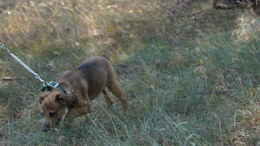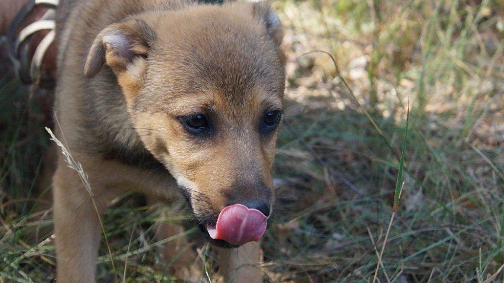 Pyzka to 3-4 miesięczna suczka znaleziona w Obornikach w okolicy ul. Armii Poznań. Jest trochę nieufna. Będzie psem średniej wielkości.