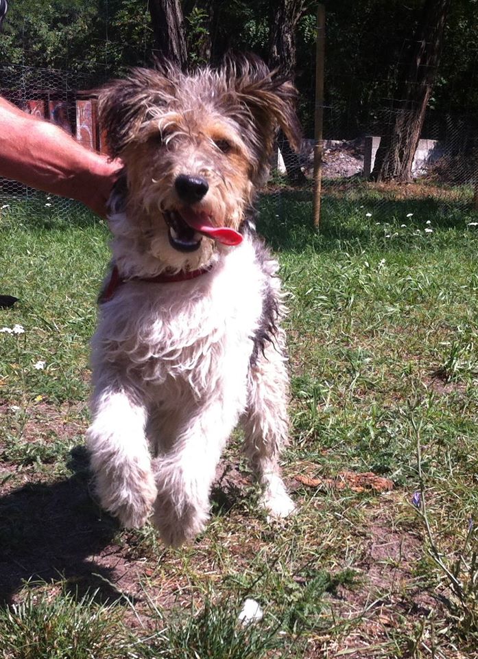 Teri ma ok. 8 miesięcy, biegał po rondzie w Kowanówku. Bardzo żywiołowy psiak, jak na teriera przystało. Teri bardzo interesuje się suczkami.