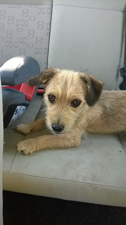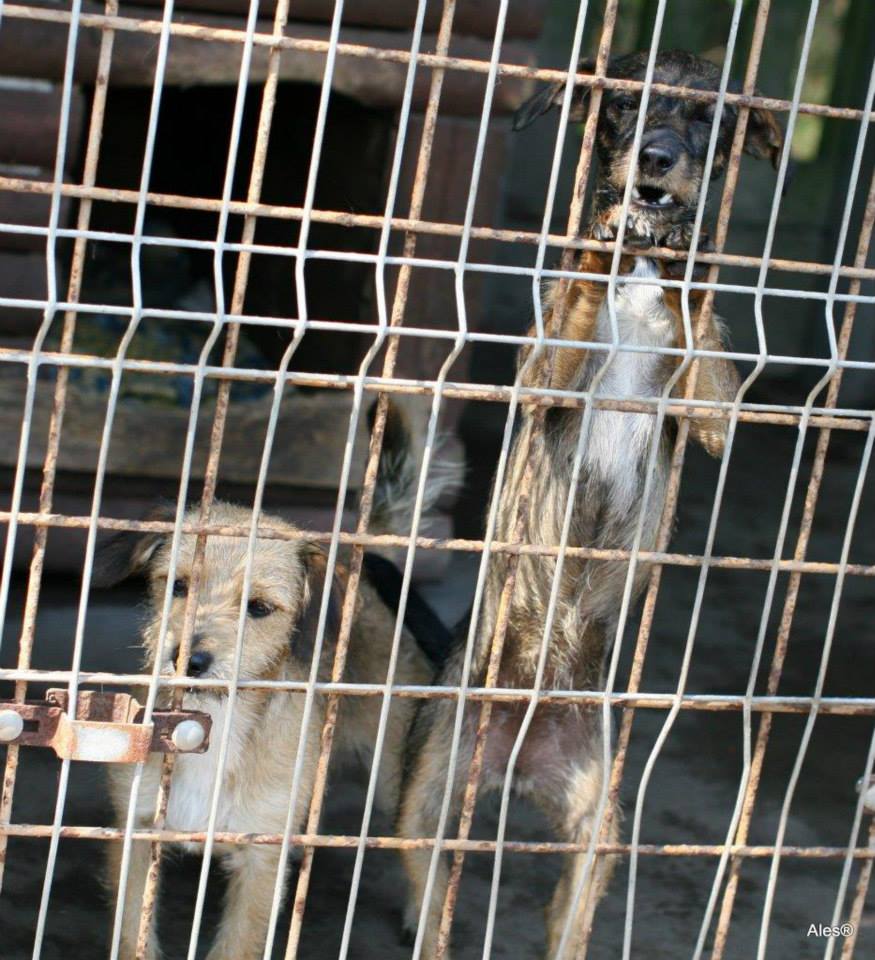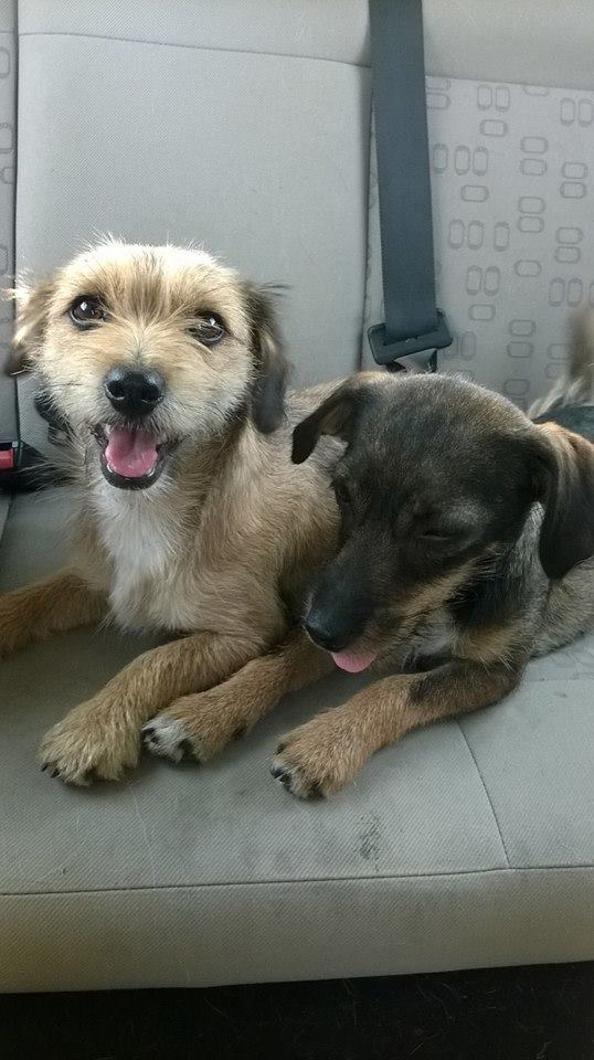 Blaszka i Śrubka półroczne psiaki bawiły się na poboczu przy złomowisku, w pełnym słońcu (36 st. C),bez opieki i bez dostępu do wody. Przyjechały z gminy Murowana Goślina.