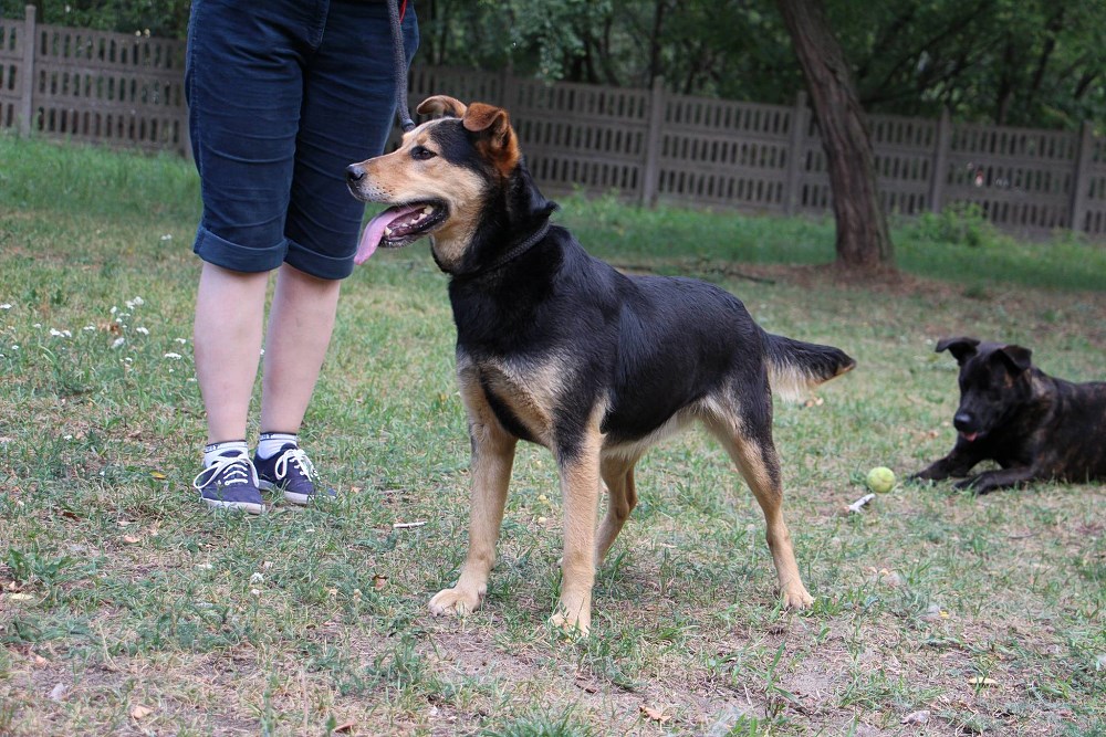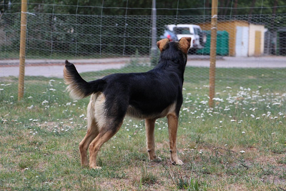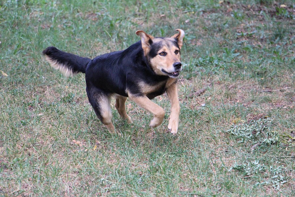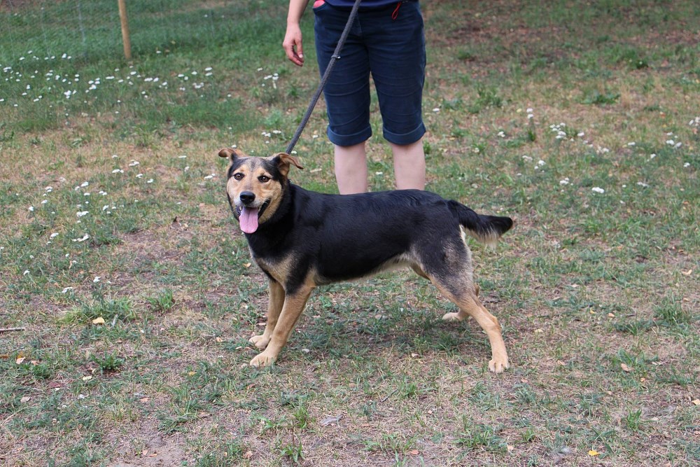 Suka przywieziona z Gościejewa z gminy Rogoźno. Młoda ok 2 lat, bardzo związana z psem, z którym biegała. Wesoła, pogodna.