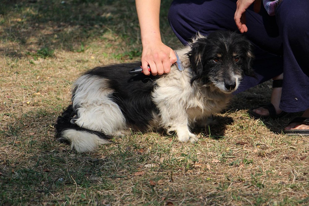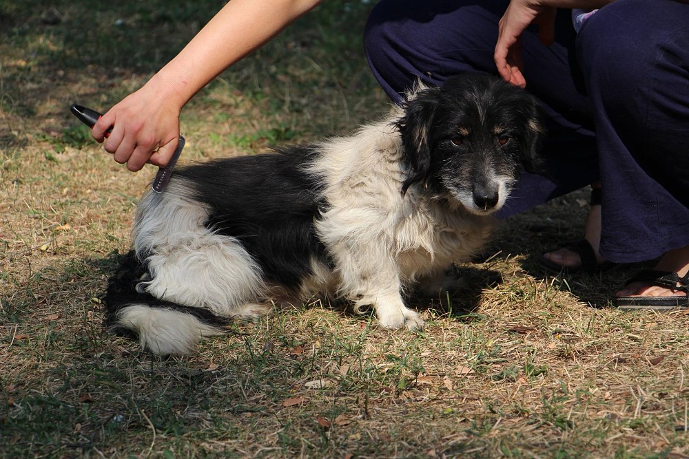 Pies, przywieziony w piątek z Garbatki- gmina Rogoźno- został wyrzucony z samochodu. Jest grzecznym, spokojnym około 2-3 letnim psem, odpchliliśmy go i odrobaczyliśmy a obroża jego trafiła do śmieci bo była aż gruba od brudu.