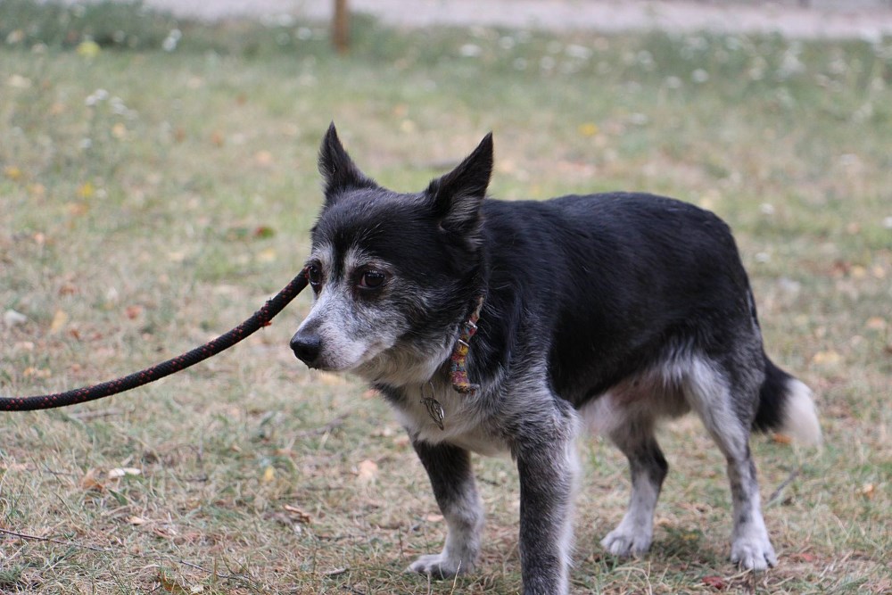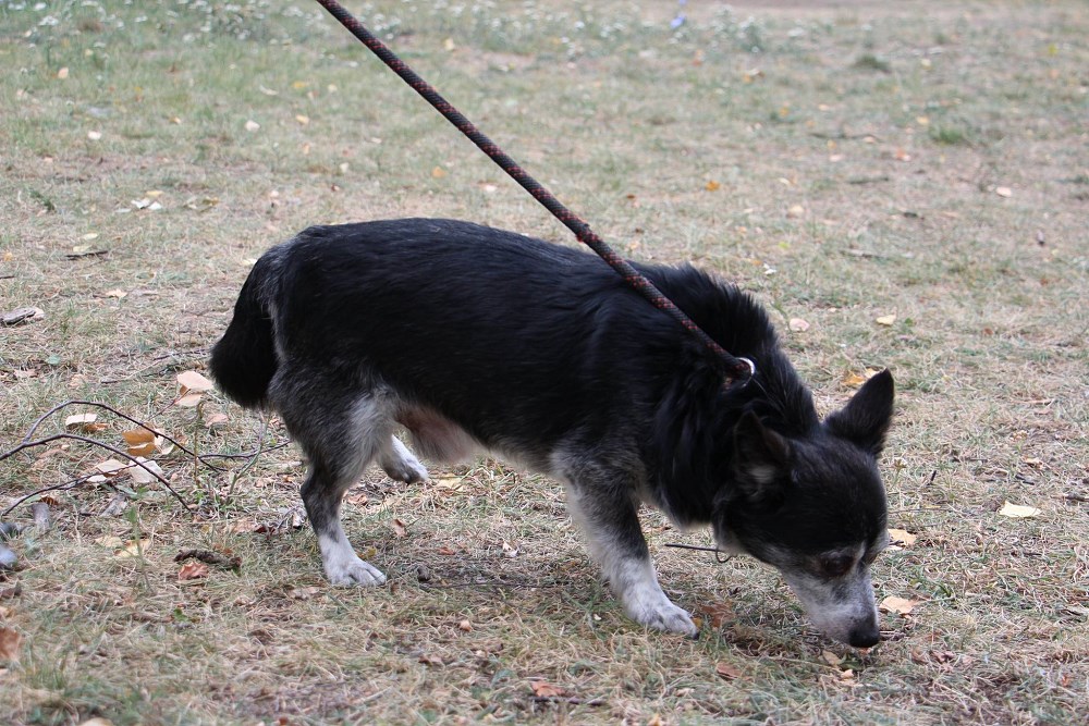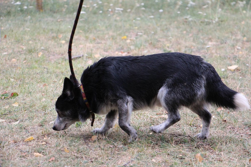 Pies z gminy Rogoźno, jest pieskiem starszym, trochę przestraszonym sytuacją. Przyjechał z jednego domu z Tarą.