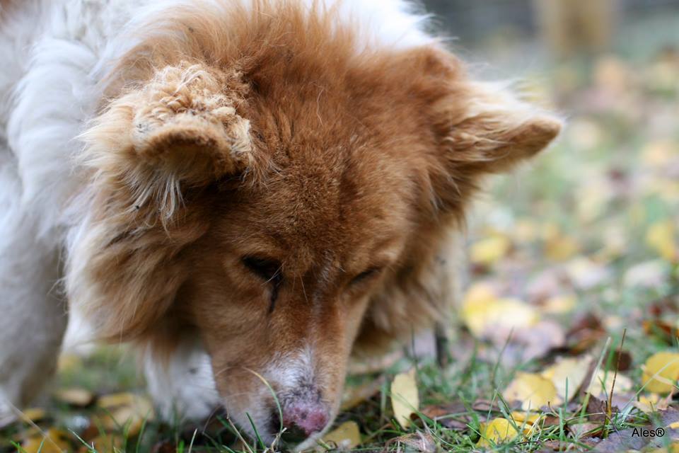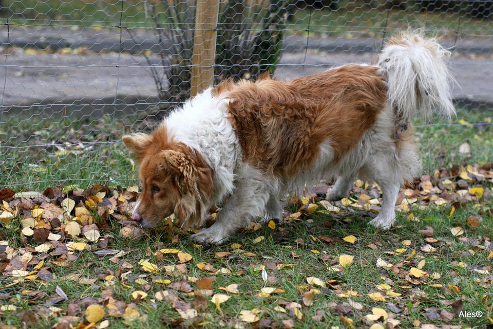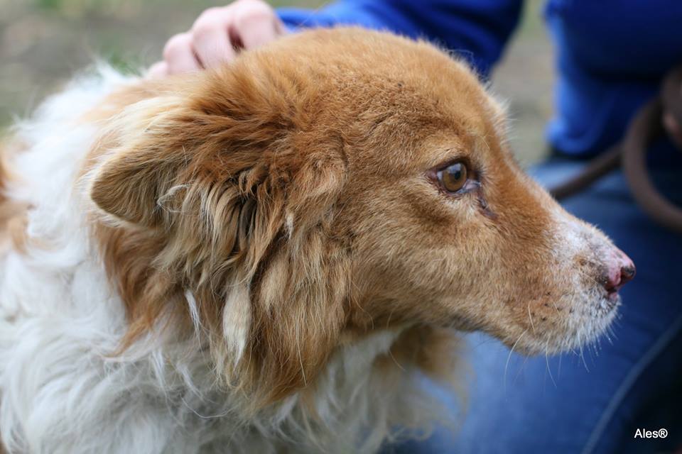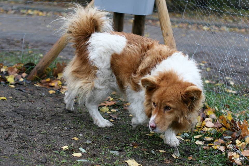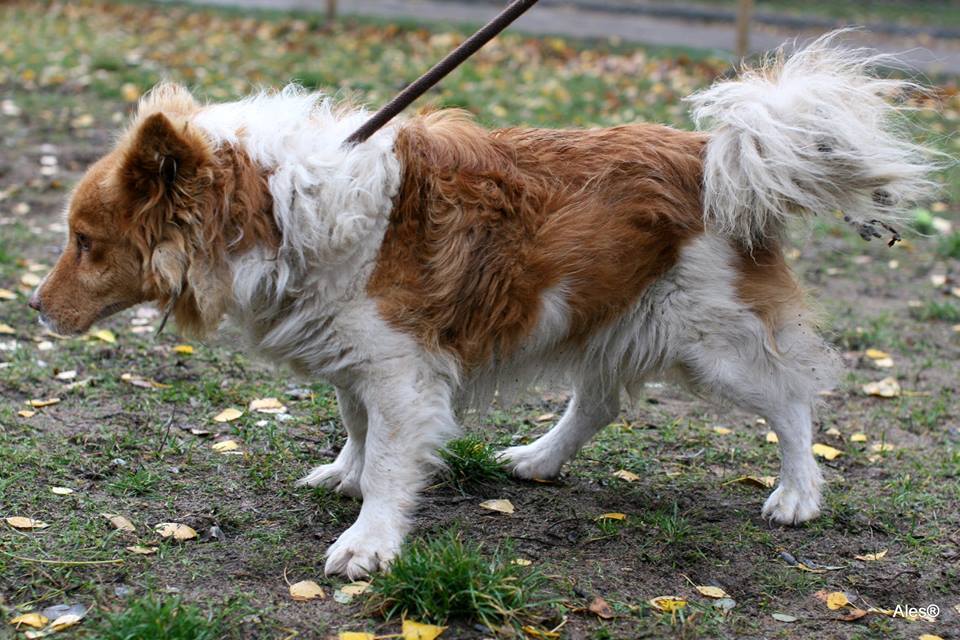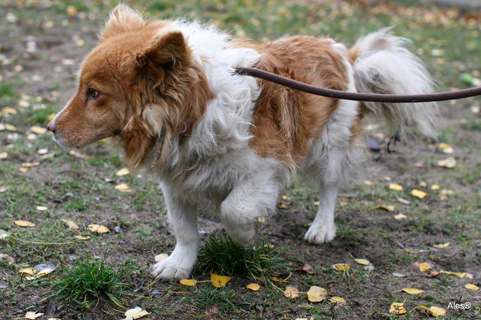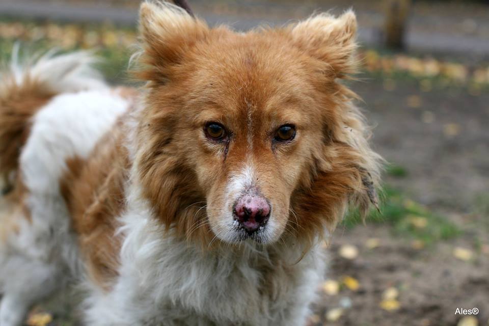 Pies, mieszaniec z Rogoźna, przyjechał z urwanym łańcuchem przy szyi, ma około 2-3 lat ichory nos- albo po ugryzieniu.