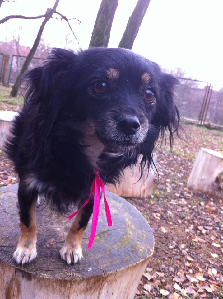 Tojka przyjechała do schroniska 25 listopada z miejscowości Tarnowo, gmina Rogoźno. Ma założoną różową wstążeczkę splecioną w warkoczyk. Bardzo granie się do człowieka, jest onieśmielona obecnością energicznych psów.