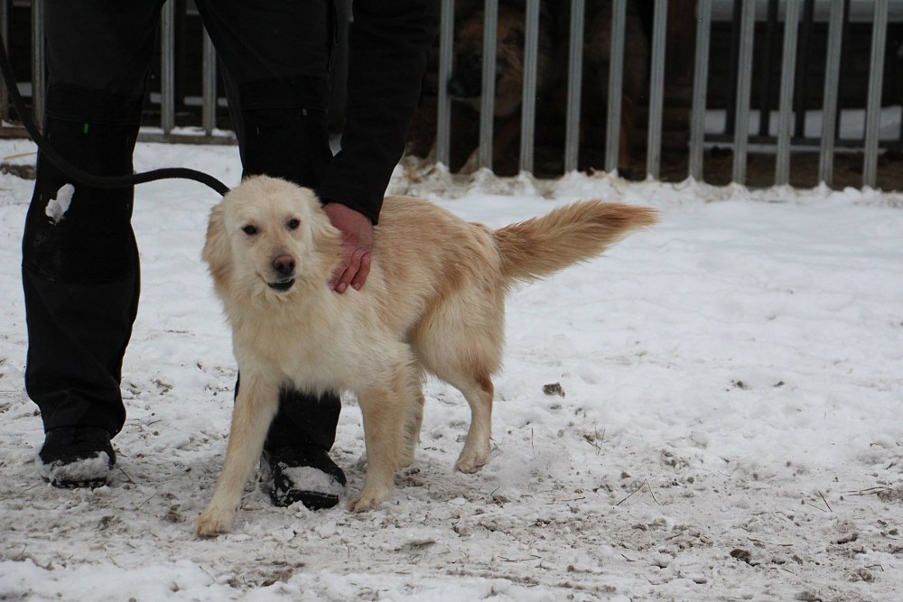 Pies z gminy Czarnków, młody ok. 2 lat, wesoły, przyjacielski dla psów i ludzi