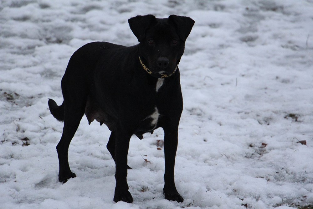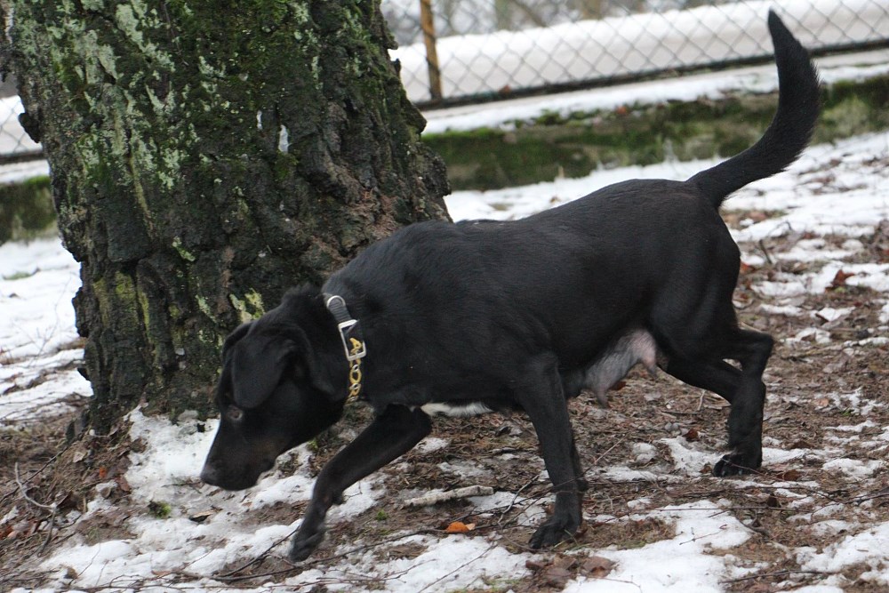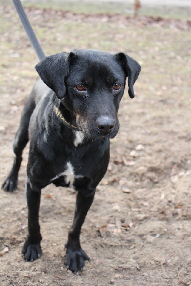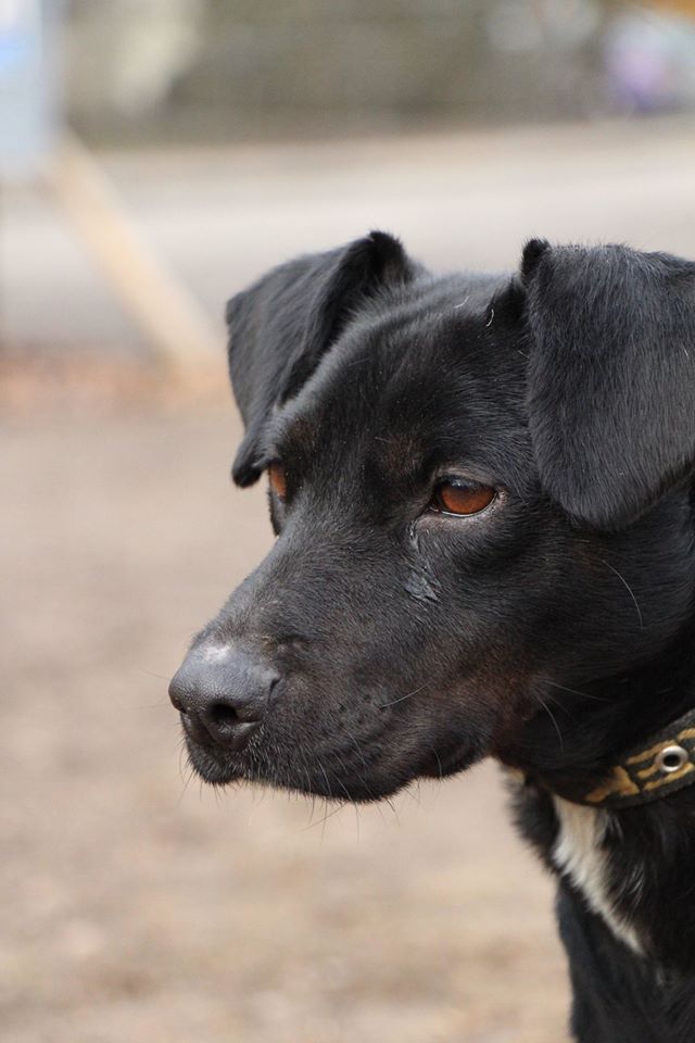 Suczka z gminy Oborniki. Ma około 5 lat i jest po karmieniu młodych ledwo co. Jest przyjazna- kolanka to najlepsze miejsce dla psa:))