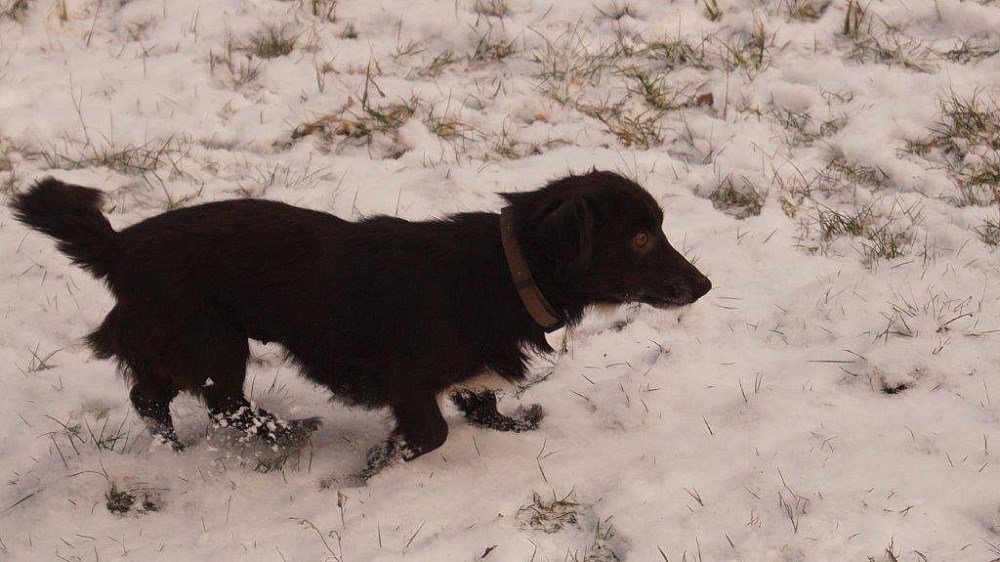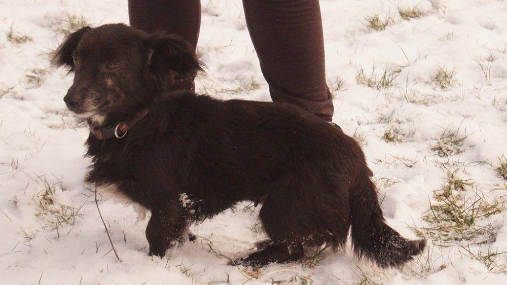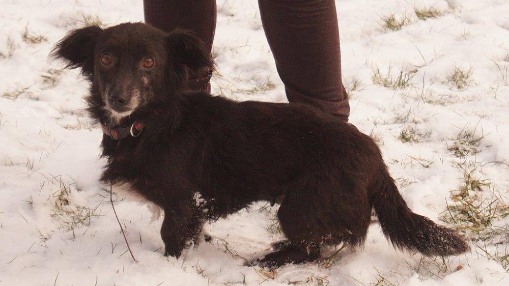 Suczka znaleziona w Nieczajnie, miała ropne zapalenie zęba, ale już jest on wyleczony. Została wysterylizowana. Spokojna, łagodna suczka.