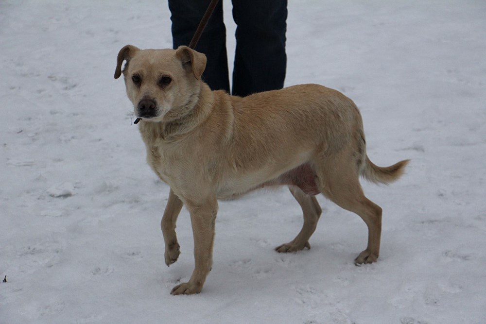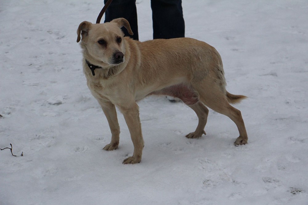 Suczka z gminy Murowana Goślina przywieziona dziś, ma przepuklinę, łagodna dla ludzi.