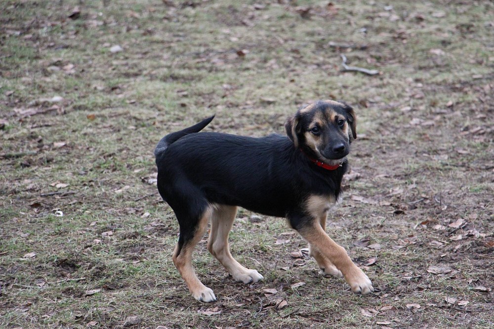 Suczka- szczeniak ok. 3-4 miesięczna, pogodna, wesoła, przyjacielska. Obroża to zło a smycz to jeszcze gorzej ale od czego są ludzie... aby uczyć jest kundelkiem, nie wiemy jakiej będzie wielkości- nawet nie próbujemy zgadywać- dostała surowicę, zwalczamy wszelakie robactwo i za 14 dni może iść do domu!