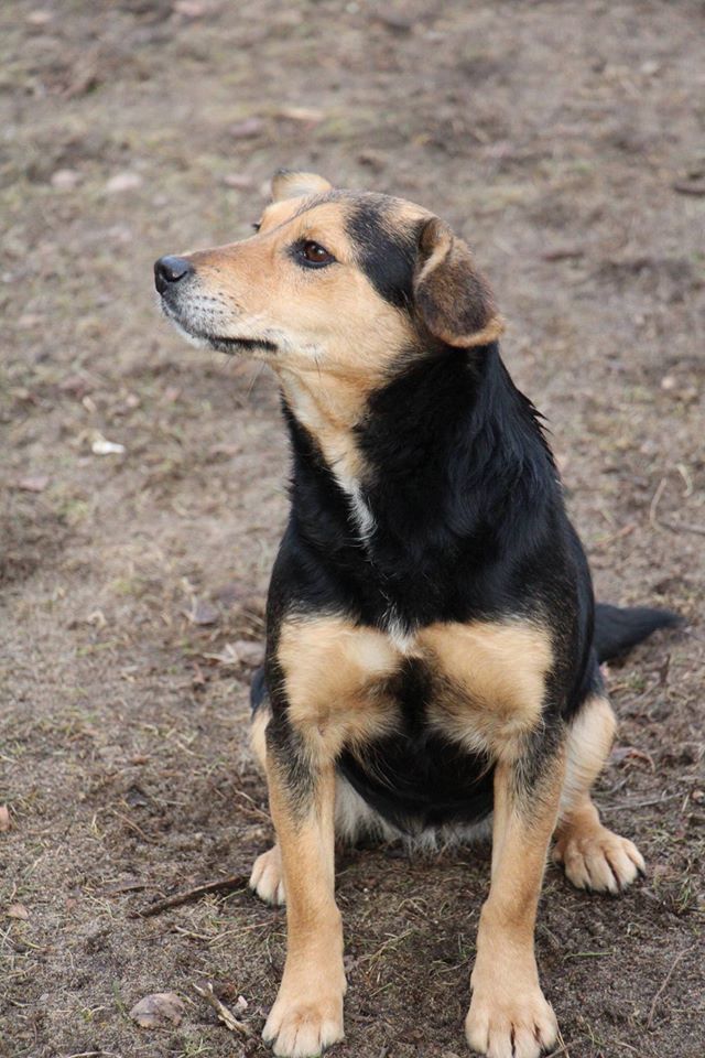 Suczka z gminy Rogoźno ok. 3 letnia, ze starymi ranami na grzbiecie- jakby od poparzenia i raną na uchu.