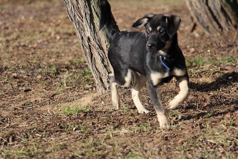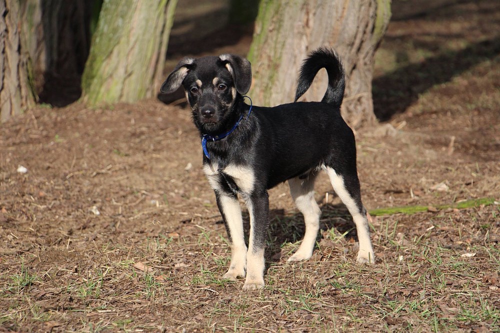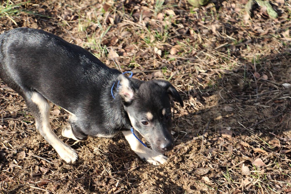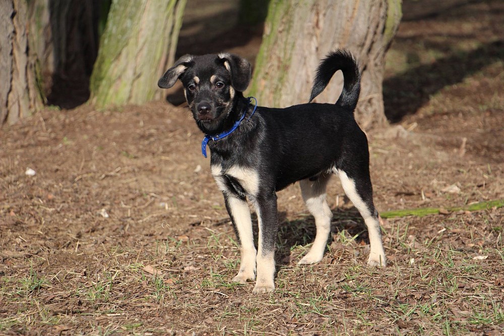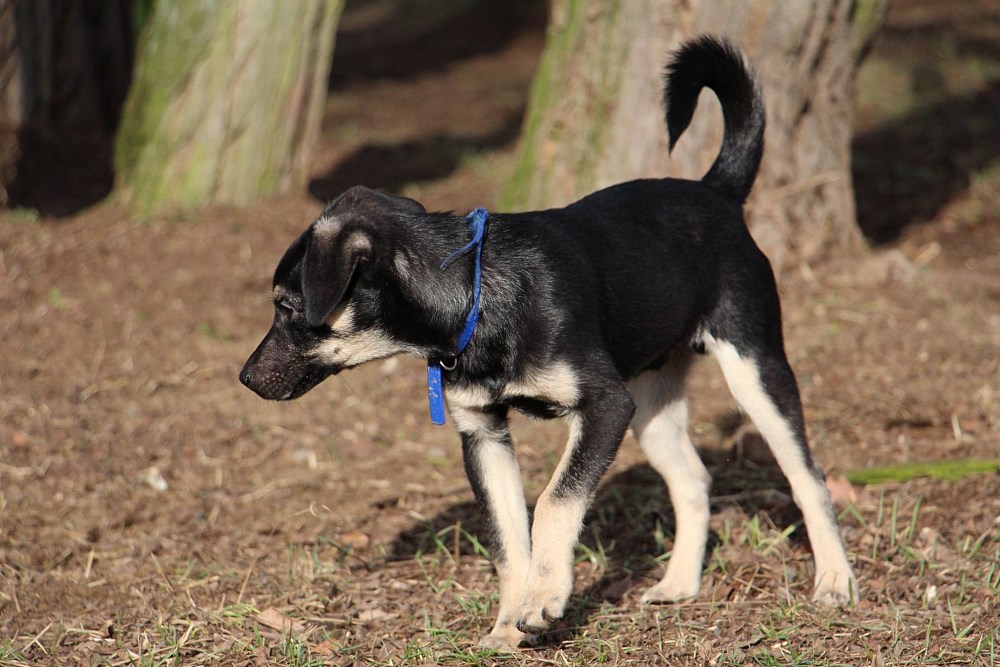 Pies- ok. 5 m-cy szczeniak, przywieziony z gminy Czarnków. Psiak został odrobaczony, odpchlony i ma podaną surowicę pod koniec lutego zaszczepimy go. Pies jest pełen energii, wesoły.