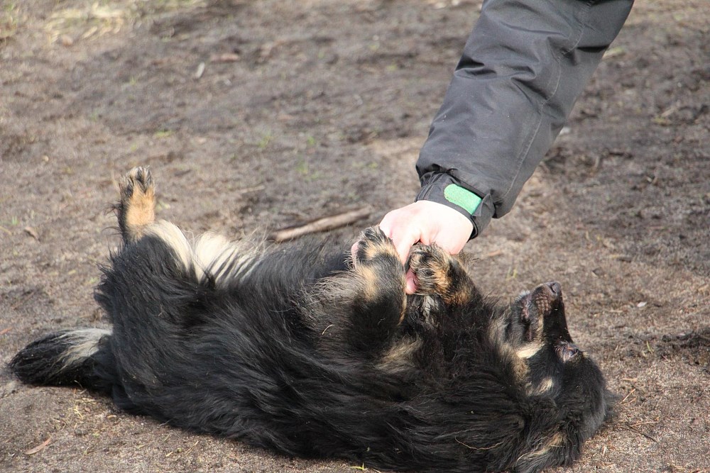 Suczka z łańcucha z gminy Rogoźno, młoda- może dziecko Gryki... ma około 1,5- 2 lat, chce bardzo towarzystwa człowieka, któremu zaufa okazując całkowite poddaństwo.